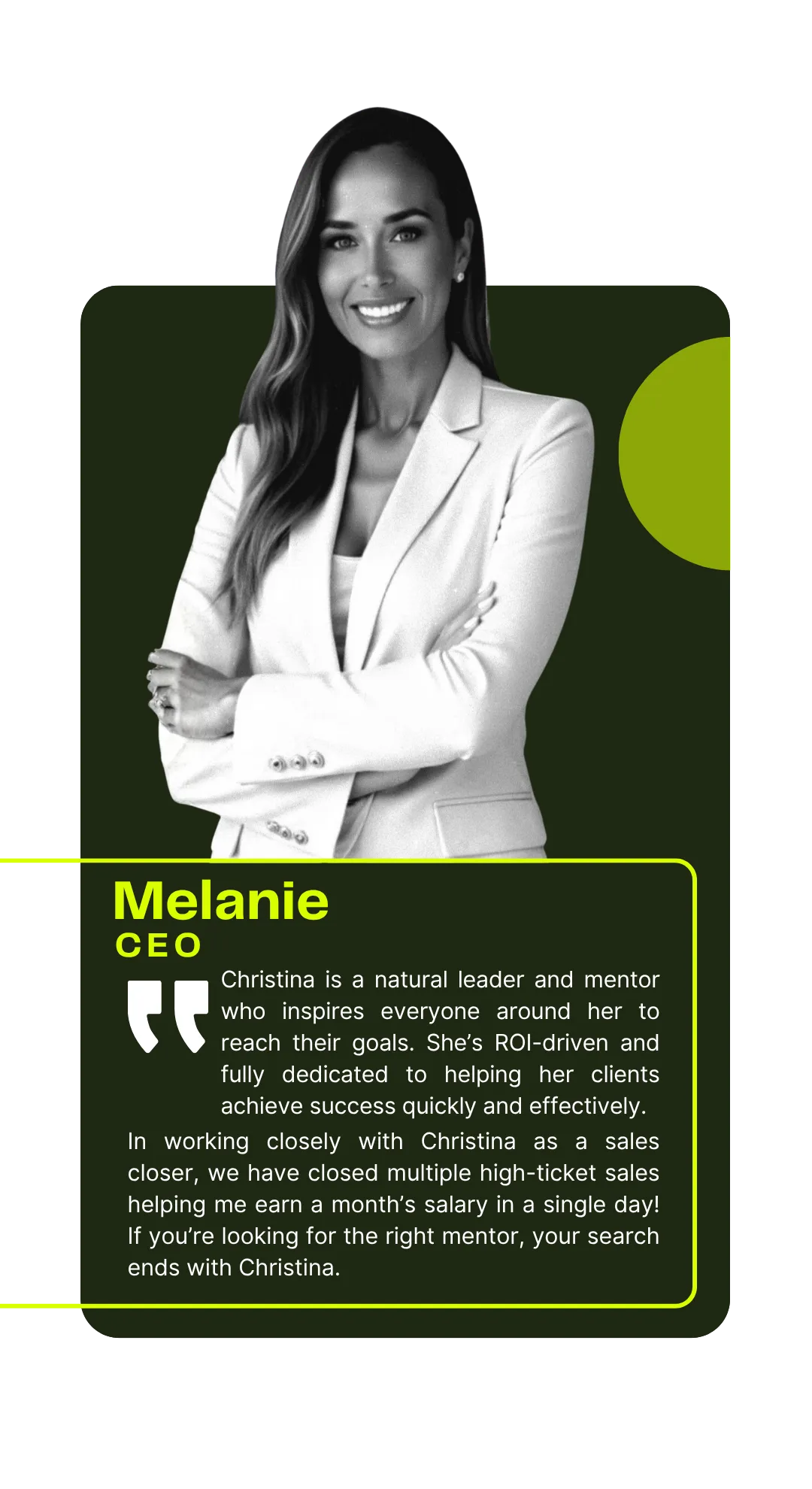 Get daily accountability, weekly coaching, direct feed back from mentors whose closed $1M+ in sales and a community of women making sales daily together.